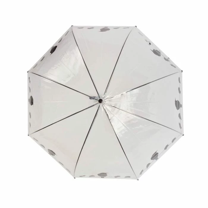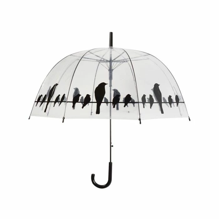 With this transparent printed umbrella, you can now enjoy a walk in the rain. The print features silhouettes of birds. Thanks to the transparent material you can still see what is happening around you.