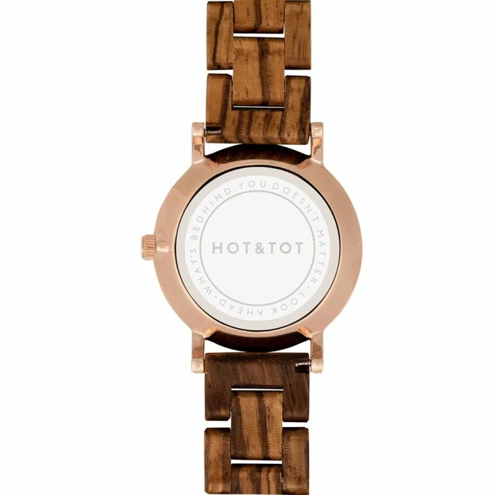 The small dial of 32mm makes this watch ideal for the slimmer wrist of women. The beautiful grain of the zebrano wood, together with the rose gold details on the white dial, make a beautiful watch that will undoubtedly impress you and those around you.