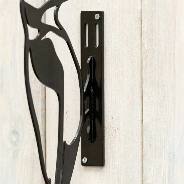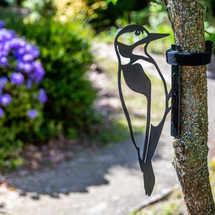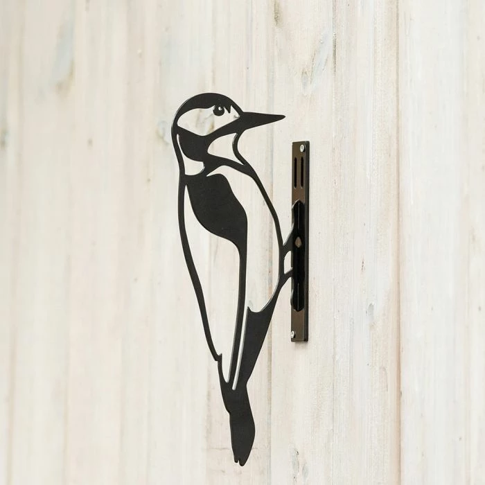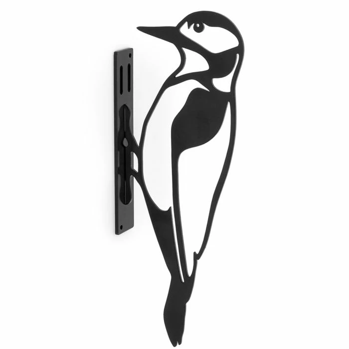 Exclusively designed by our own designers, decorate your garden with this captivating metal silhouette of the Great Spotted Woodpecker. Position it on the side of a tree or fence or add interest to a doorway. Made in metal, finished with a powder coating and a black lacquer layer to provide a durable and attractive wildlife accessory for your garden.