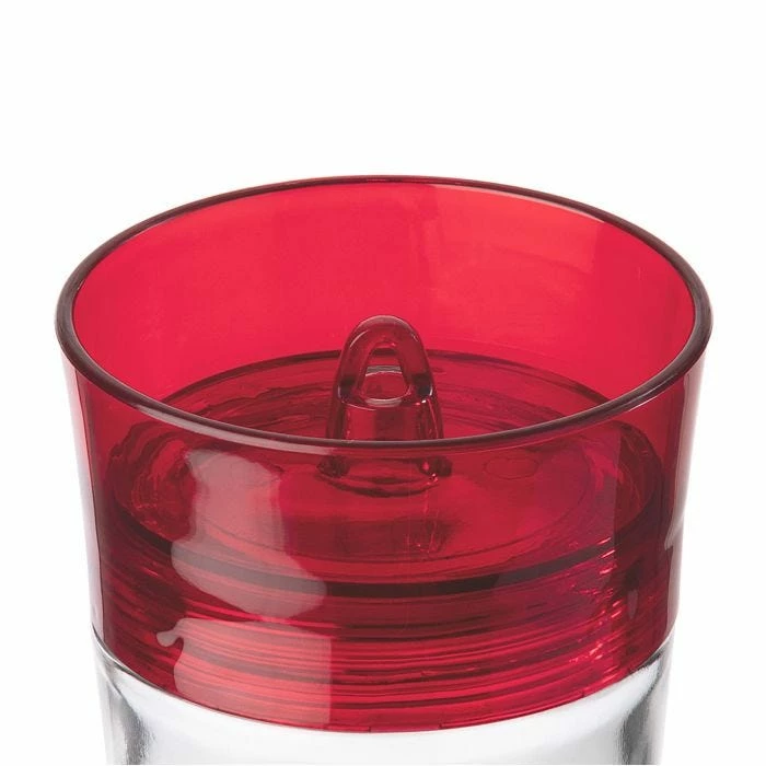 colorful red top and base. The wide bottle opening and detachable flat base make filling easy and cleaning a breeze. The