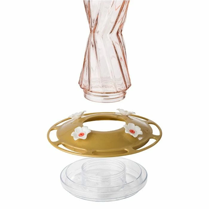 opening and flat bottle make it easy to fill, and the feeder disassembles into three pieces for convenient cleaning. Hummingbirds