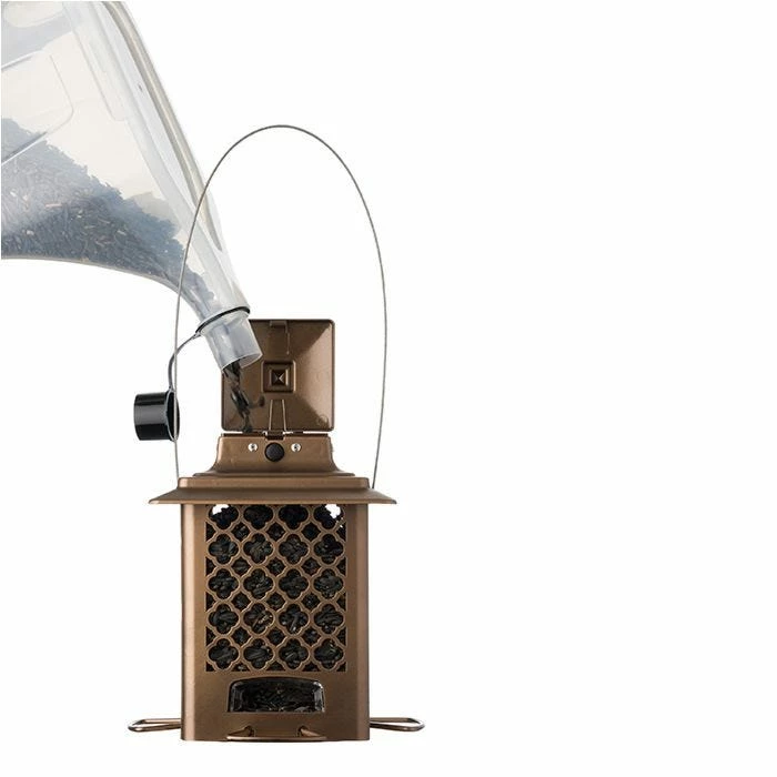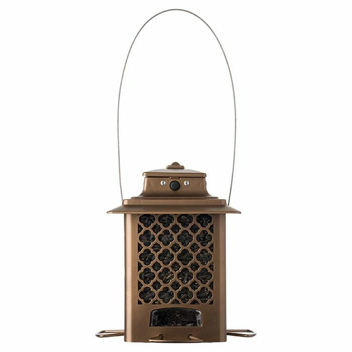 metal hopper frame is resistant to squirrel chewing and coated in a beautiful matte bronze finish. Its elegant