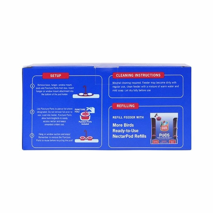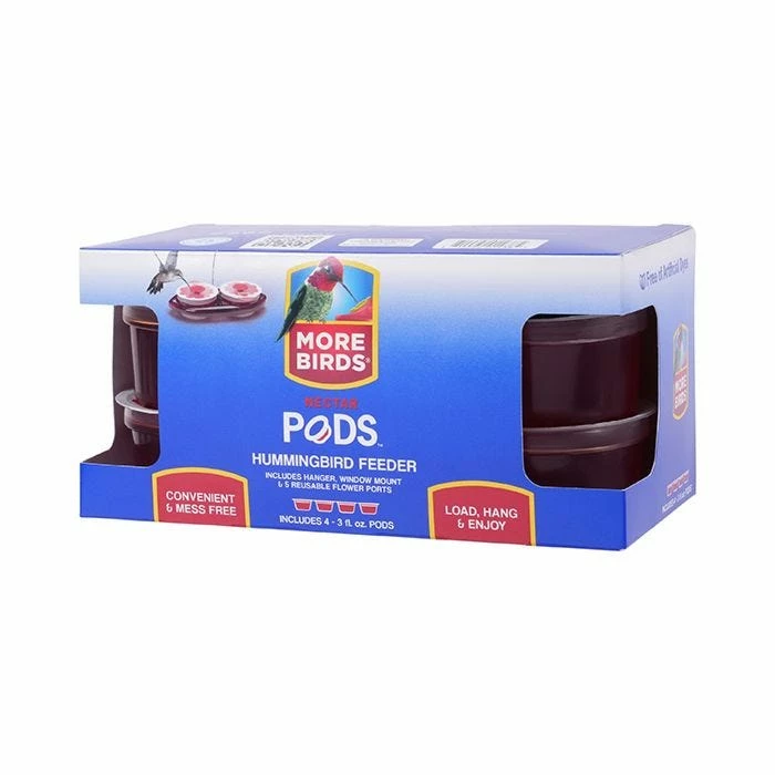 The More Birds® Nectar Pods™ Gemini Hummingbird Feeder includes everything you need to feed hummingbirds by combining a feeder and nectar in one convenient package. The ready-to-use pods are pre-filled with nectar, making them a convenient, mess-free way to feed hummingbirds. More Birds® is the original single-use nectar brand, making hummingbird watching an easier, cleaner, and more enjoyable hobby!