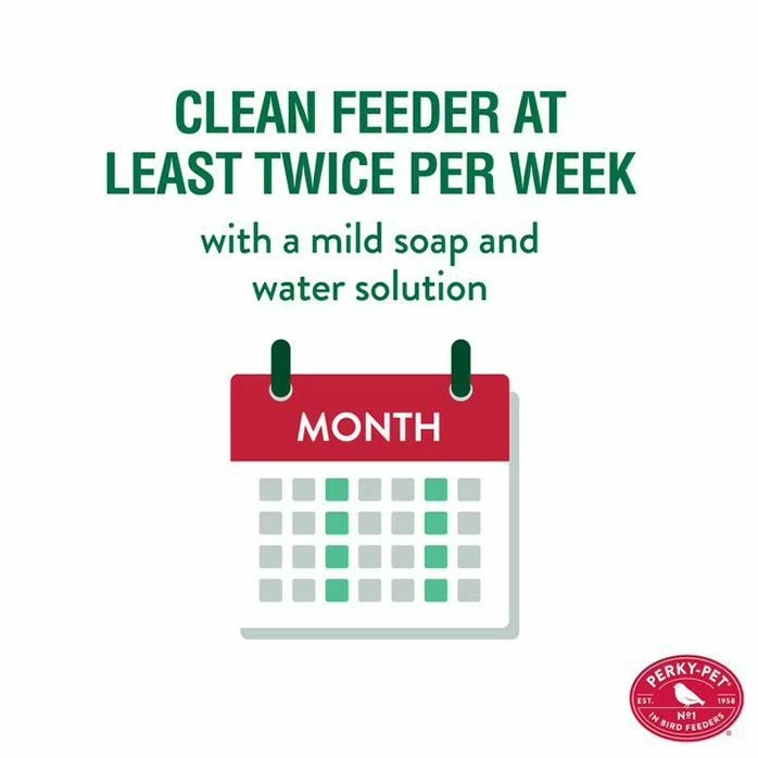 A clean hummingbird feeder is much more likely to attract visitors. To make your job easier, this feeder features a pop-apart base so you can access all the nooks and crannies. The wide-mouth glass bottle lets you just pour the nectar in without having to worry about spills. Remember to clean your feeder at least twice per week with a mild soap and water solution to prevent mildew buildup.