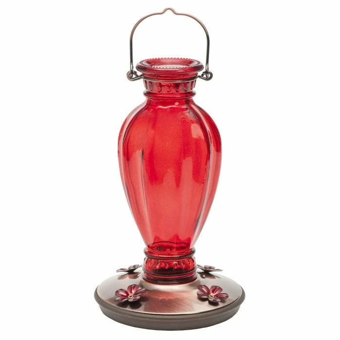 This Perky-Pet® Daisy Vase Vintage Hummingbird Feeder features a stunning vintage-style glass bottle design that fits right in with retro tastes and makes it a décor piece as well as a bird feeder. This feeder also has a beautiful red luster finish that naturally attracts more hummingbirds.