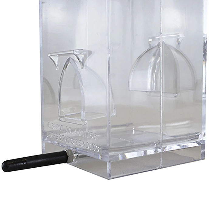 For your convenience, the Evenseed™ Silo is constructed of clear shatter-resistant plastic, which not only ensures durability, but also makes it easy to monitor seed levels at a glance. Each seed compartment is able to hold up to 1 lb of seed, resulting in an overall 3 lb seed capacity. Built-in drainage holes prevent water from pooling in the reservoir so seed remains fresh for longer.