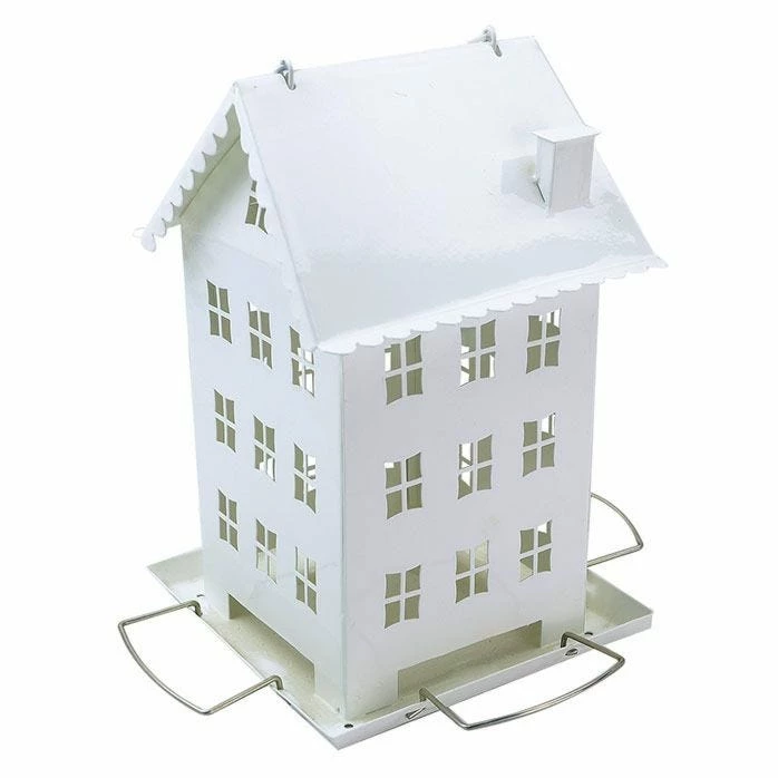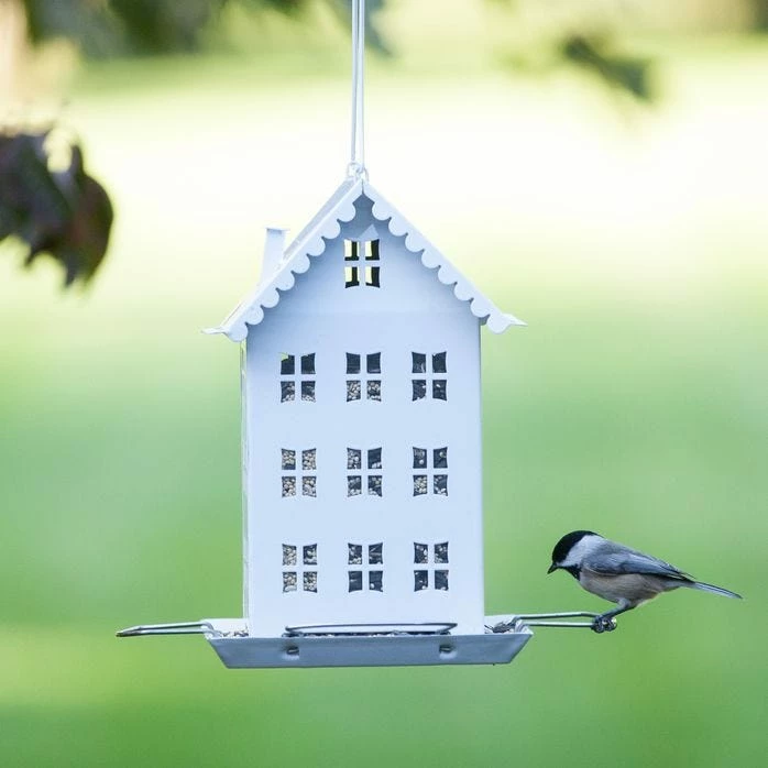 Introduce your backyard birds to the charm of farmhouse living with the Perky-Pet® Farmhouse Feeder. This quaint white feeder is designed to resemble an old-fashioned farmhouse, complete with a gabled, scalloped-edge roof and an array of windows. In addition to adding authentic appeal, the numerous windows allow you to easily monitor seed levels.