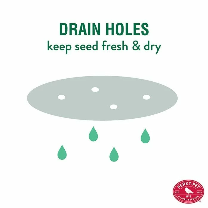 Birds prefer seed that is fresh and dry. Thanks to this feeder’s built-in drainage holes, water is unable to pool in the reservoir. Instead, water can flow freely out of the base so seed airs out more quickly, ensuring it stays fresh for longer. Not only will the birds love it, but it also means less seed waste for you!
