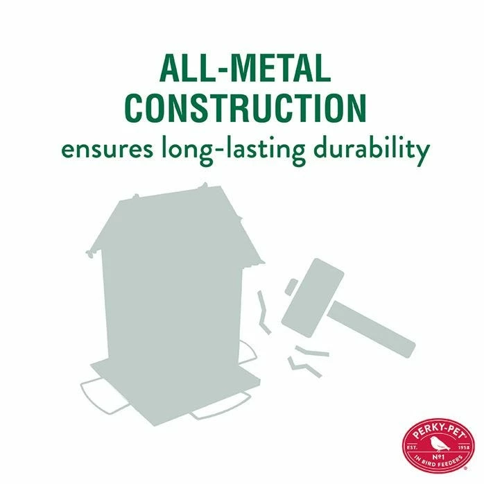 The Perky-Pet® Farmhouse Bird Feeder brings superior durability to your bird-feeding routine – it’s all metal. The feeder’s powder-coated finish is resistant to rust, while the sturdy metal construction will help prevent damage by squirrels. You can be sure this feeder will be a focal point in your backyard for many years to come!