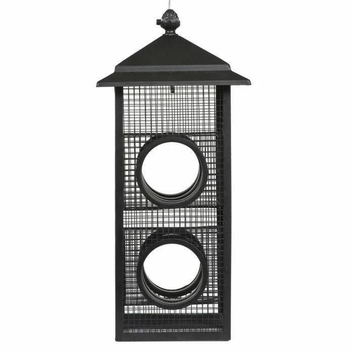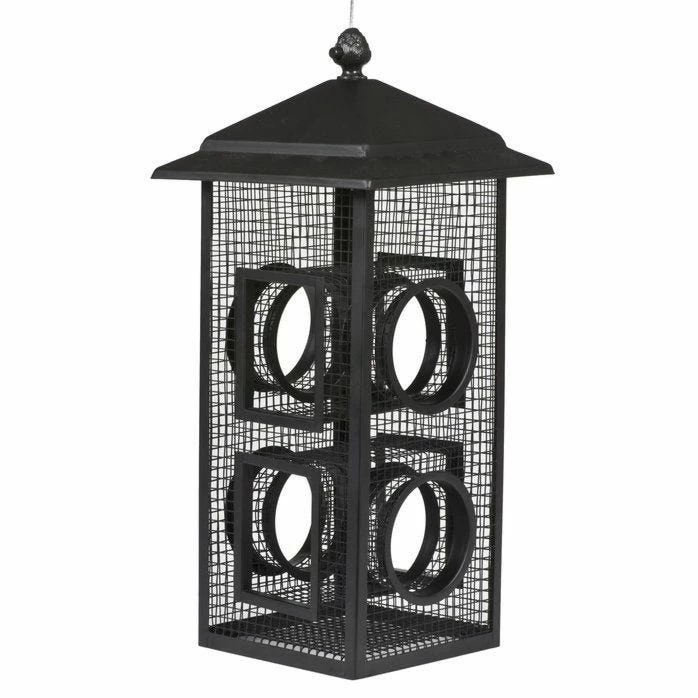 - Metal mesh Fly Thru Bird Feeder with 2 fly through feeding stations will encourage many feeding birds!