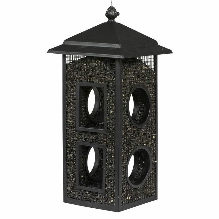 The Perky-Pet® Fly Thru Wild Bird Feeder is distinct in its look and usage. With its two fly through feeding stations – you will have the opportunity to watch birds resting in their feeding station while enjoying their food! The complete mesh option on all fours sides – makes bird watching that much more visible. The feeder holds up to 2 lb of black oil sunflower seed – which will attract broadest variety of birds.