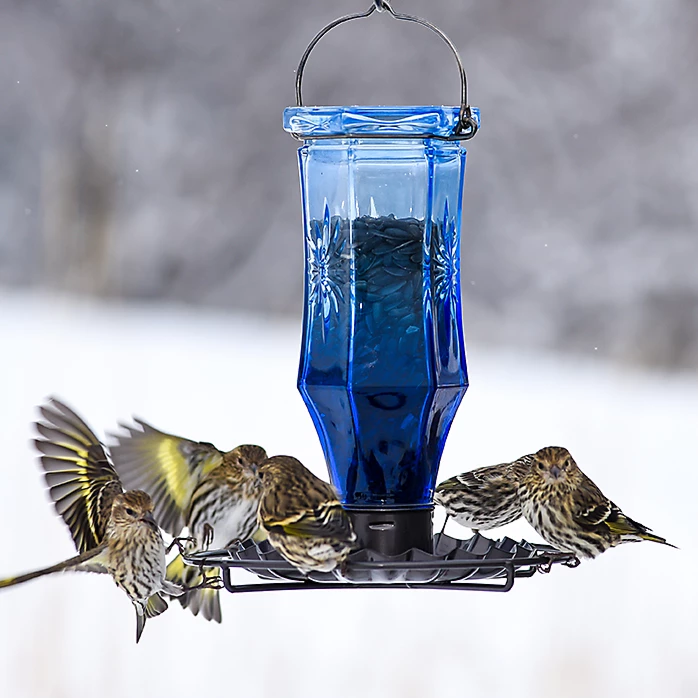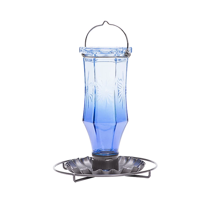 Add classic style to your backyard bird feeder collection with the Perky-Pet® Sapphire Starburst Vintage Wild Bird Feeder. Featuring a bold blue antique glass bottle embellished with starburst accents, this feeder is sure to entice birds to stop for a tasty treat.