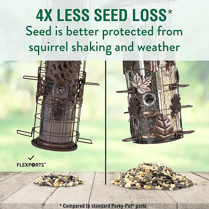 Our patented Flexports® offer 5-in-1 benefits for birds and you. The unique design is 4X more shake resistant than standard Perky-Pet® ports so there’s less seed waste – which means money saved and fewer messes on the ground! The design also allows birds to feed at an optimal position outside of the port, offering improved visibility so they feel safer and visit the feeder longer. Because birds are more comfortable, you’ll get more birdwatching time overall!