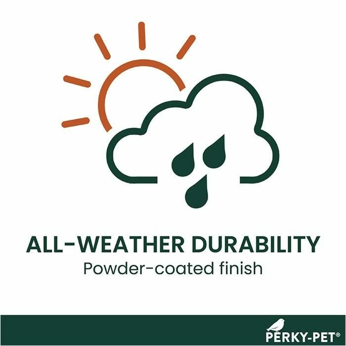 The Perky-Pet® Squirrel-Be-Gone® Bird Feeder combines innovative squirrel-resistant features with attractive design to create a feeding station that is truly unparalleled. The weight-activated cage keeps squirrels from accessing ports, while the metal helps to resist damage from chewing. With its rustic powder coating and decorative leaf-themed design, this feeder will make a charming addition in any backyard setting. Simply hang using the convenient built-in hanging cord!