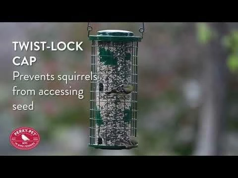 The Perky-Pet® Squirrel Stumper® Bird Feeder combines squirrel-resistant features with attractive design to create a feeding station that is truly unparalleled. First, there’s the twist-lock lid, which not only removes for easy filling, but also locks in place so squirrels can’t easily open the feeder and steal seed. This feeder also boasts a metal wire cage that creates a barrier around the ports making it harder for squirrels to gain access. In addition to its squirrel-resistant features, the Squirrel Stumper® is also a favorite of birds. The whopping eight feeding ports spaced evenly around the feeder provide plenty of room for multiple birds to dine at the same time.