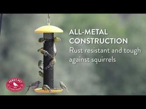 The Perky-Pet® Yellow Straight-Sided Finch Feeder stands for durability. It has no wood and no plastic – it’s all metal! The wire mesh design features a powder-coated finish to resist rust, while the sturdy metal construction will help thwart squirrel damage. You can be sure this feeder will be a focal point in your backyard for many years to come!