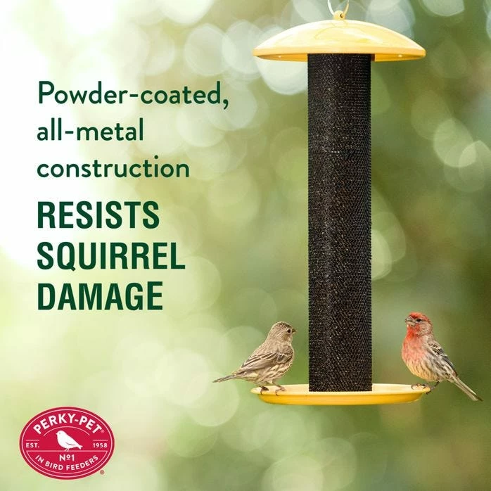 Make your backyard or garden the new hotspot for every thistle-eating bird in town with the Perky-Pet® Yellow Straight-Sided Finch Feeder. This charming 1.5 lb capacity feeder is a perfect combination of durable and functional. The wire mesh, all-metal construction resists damage, while also being low-maintenance and easy to clean. In addition, Evenseed technology also allows for an even distribution of seed throughout the feeder as it empties.