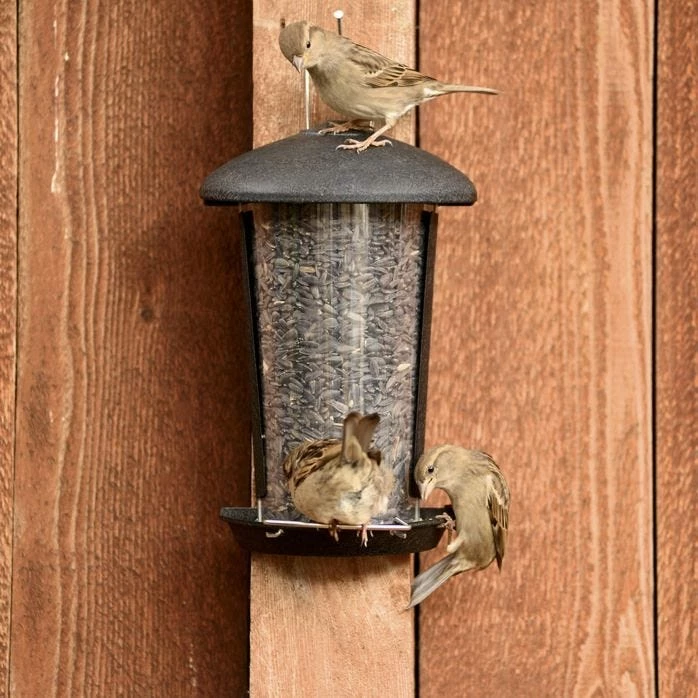 The clear plastic reservoir makes it easy to monitor seed levels and detaches easily from the feeder base for quick cleaning and filling.