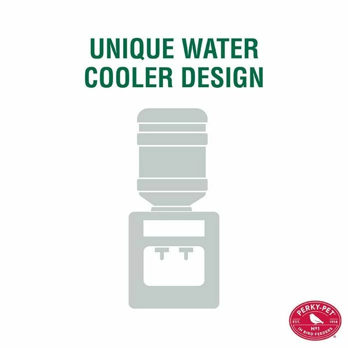 The Perky-Pet® Water Cooler Bird Waterer provides 1.5 qt of fresh water to your thirsty backyard birds. The unique water cooler shape allows your birds to have their own type of water cooler to gather around! The ergonomic hand on the Water Cooler bottle enables easy filling and carrying. Water is an essential element for attracting birds. By adding water to your offering along with a food source, you’ll attract a larger variety of birds including birds that don’t eat seed such as the popular bluebird, swallow and warbler. Birds will seek out a water source in a variety of ways – rivers, streams, ponds, puddles and even raindrops. Provide them fresh, clean water in your backyard and they may never have to go elsewhere again! Keep water fresh by changing the water every few days. Clean waterer every two weeks with a mild soap and water solution. Be sure to rinse thoroughly.